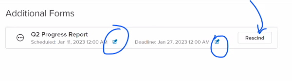- From the submission details view, add or edit a deadline, edit the scheduled date, or rescind the form (see image below)
